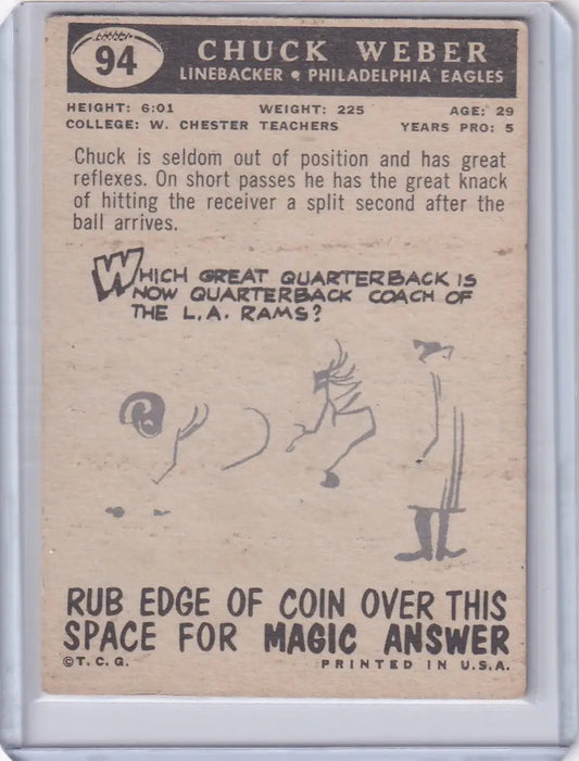 1959 Topps Football # 94 Chuck Weber RC - Philadelphia Eagles