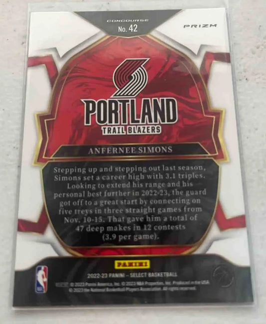 2022 Panini Select Anfernee Simons Blue Prizms #42 Concourse Trail Blazers
