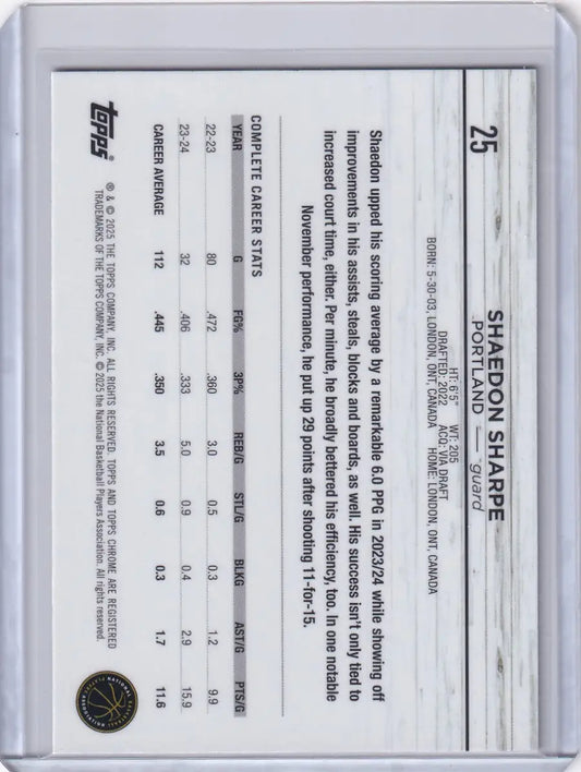 2024-25 Topps Chrome Pink Refractors #25 Shaedon Sharpe - Portland Trail Blazers