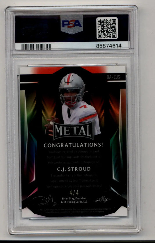 CJ Stroud 2023 Leaf Metal Auto Pink Mojo 4/4 PSA 10 Gem Mint
