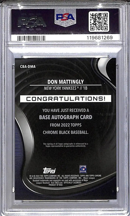 2022 Topps Chrome Black Gold Mini Diamond #CBA-DMA Don Mattingly PSA 10 GEM MINT Auto 19/50 New York Yankees
