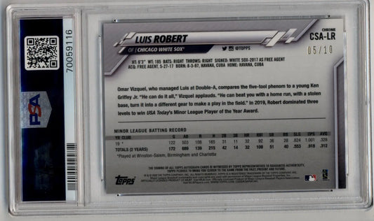 Luis Robert 2020 Topps Chrome Sapphire Auto Purple Refractors #CSALR 05/10 PSA 9 Auto 10