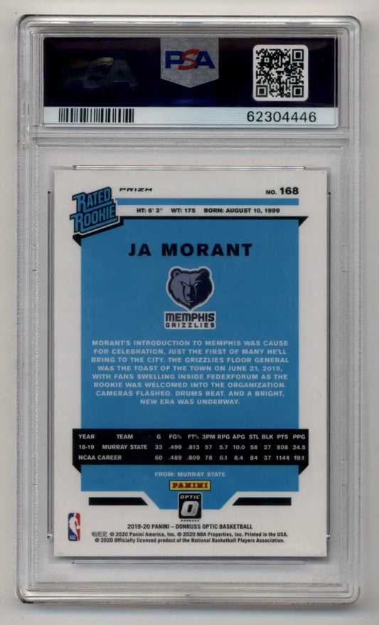 Ja Morant 2019-20 Donruss Optic Hyper Pink #168 PSA 10 Gem Mint