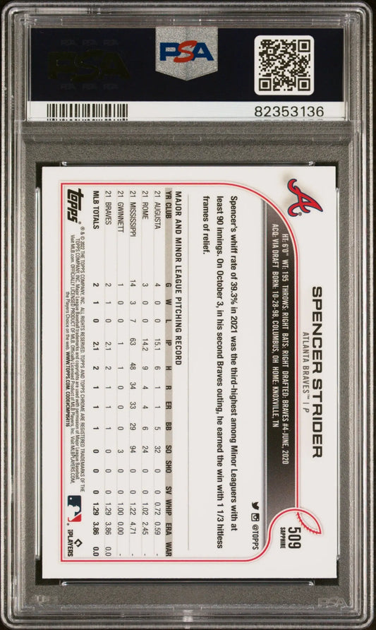 Spencer Strider 2022 Topps Chrome Sapphire #509 PSA 10 Gem Mint