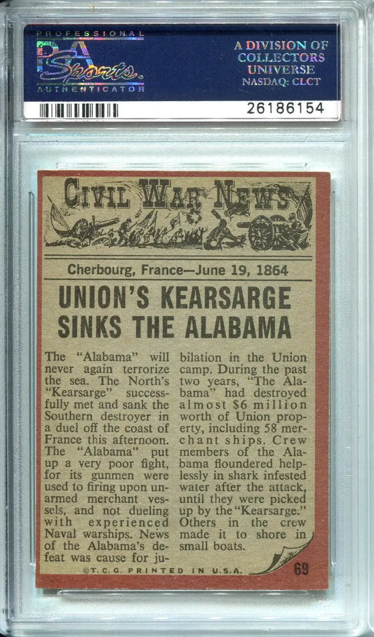 1962 Topps Civil War News #69 Death In the Water PSA 7 Cherbourg France June '64