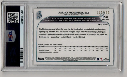 Julio Rodriguez 2022 Topps Update Green Foil 357/499 PSA 10 Gem Mint