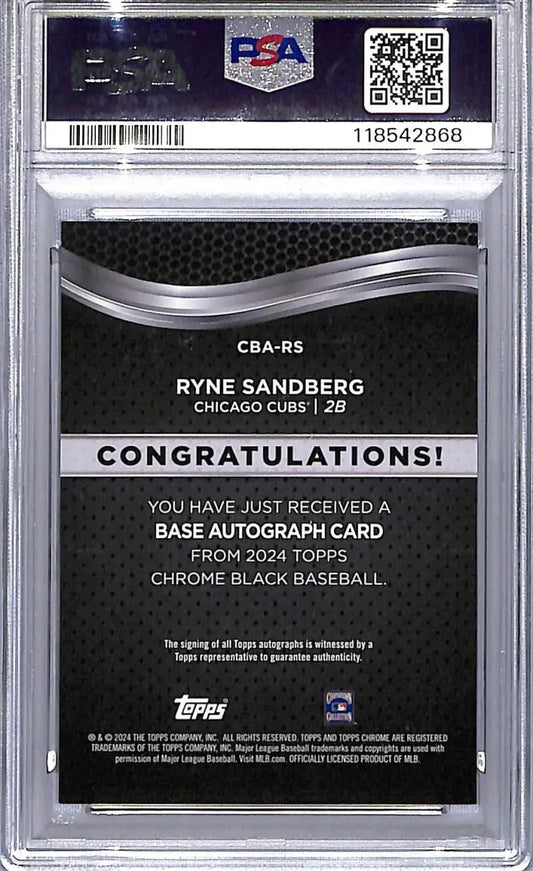 2024 Topps Chrome Black #CBA-RS Ryne Sandberg PSA 9 MINT Auto Chicago Cubs