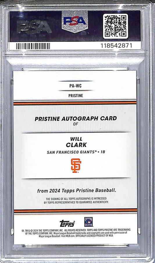 2024 Topps Pristine Green #PA-WC Will Clark PSA 10 GEM MINT Auto 104/150 San Francisco Giants