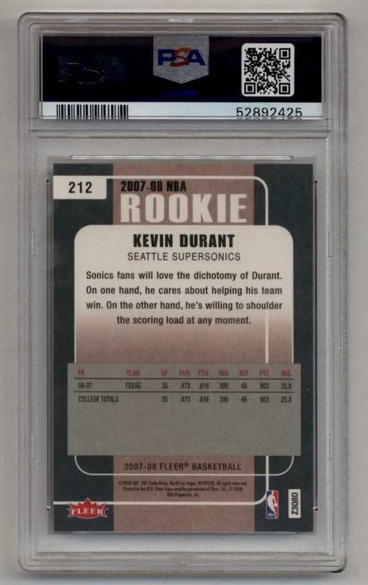 Kevin Durant 2007-08 Fleer Rookie #212 PSA 10 Gem Mint