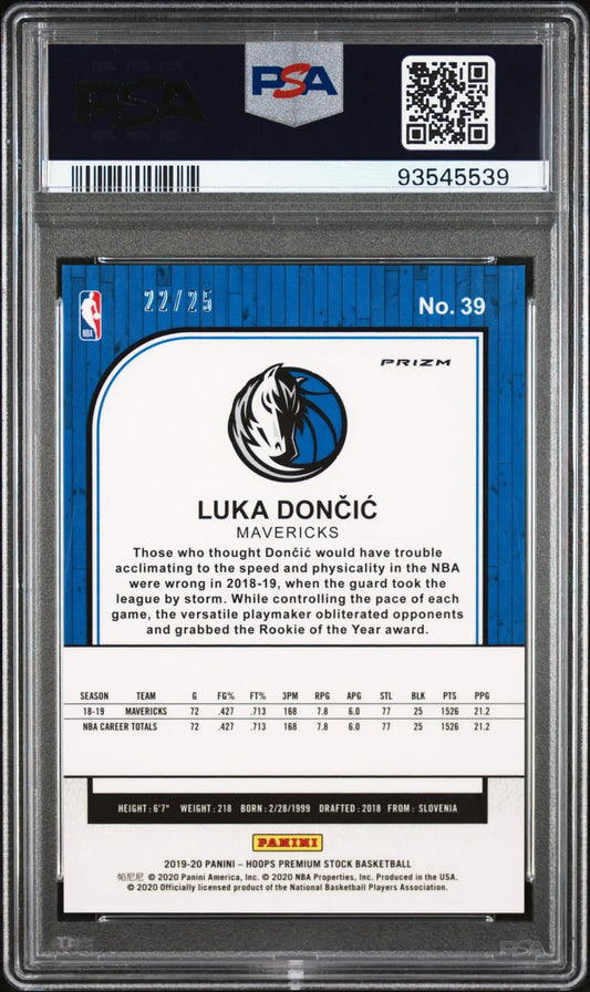 Luke Doncic 2019 Hoops Premium Purple Cracked Ice #22/25 PSA 10 Gem Mint