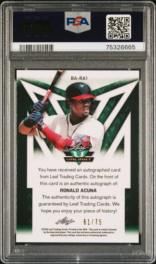 Ronald Acuna Jr. 2020 Leaf Valiant Orange Auto #61/75 PSA 10 Gem Mint