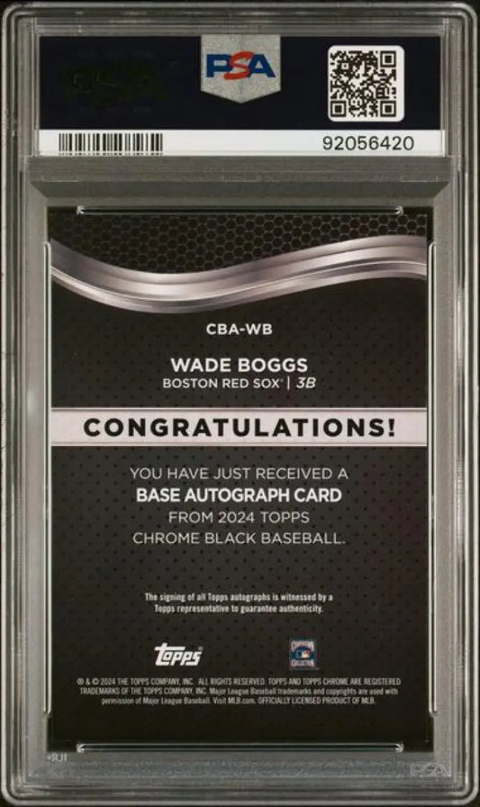 2024 Topps Chrome Black #CBA-WB Wade Boggs PSA 9 MINT Auto Boston Red Sox Baseball Card