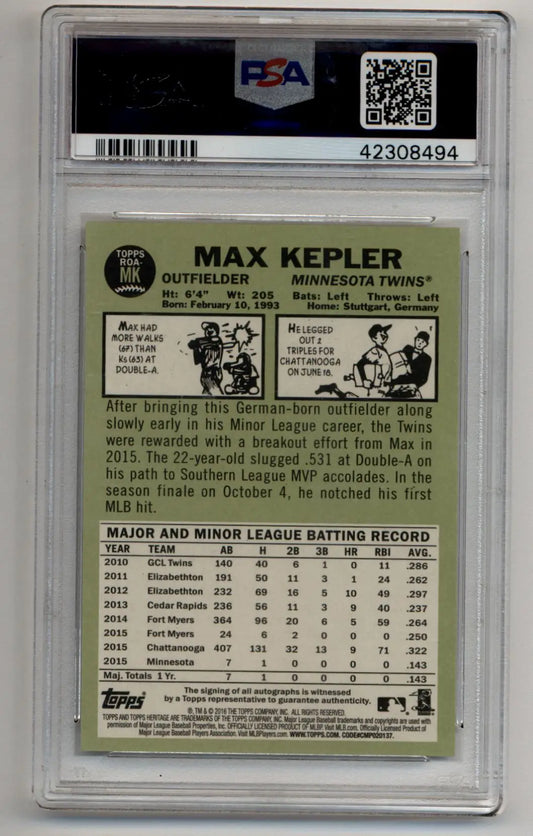 Max Kepler 2016 Hertiage Real One Auto #MK PSA 10 Gem Mint