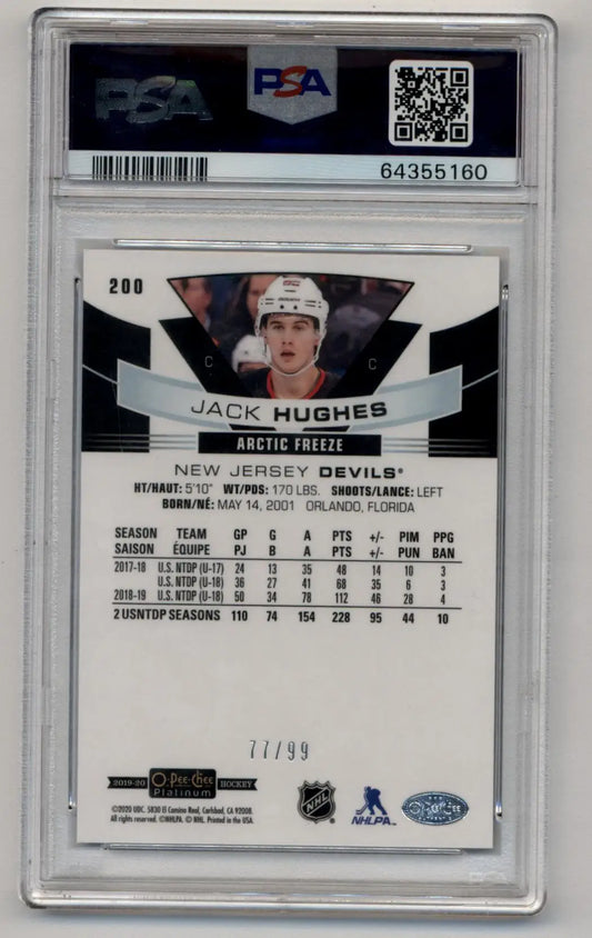 Jack Hughes 2019-20 O-Pee-Chee Platinum #200 Artic Freeze 77/99 PSA 10 Gem Mint