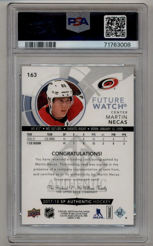 Martin Necas 2017-18 SP Authentic #163 Auto PSA 10 Gem Mint Auto 10