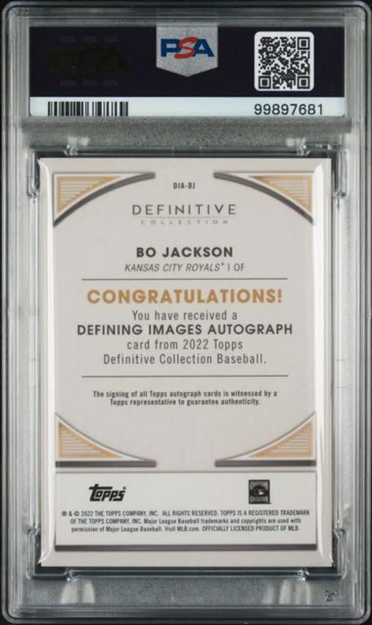 2022 Topps Definitive #DIABJ Bo Jackson PSA 9 MINT Auto Kansas City Royals Baseball Card