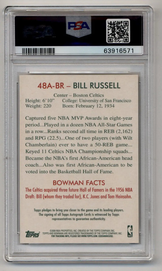Bill Russell 2009-10 Bowman '48 Auto #48ABR PSA 10 Gem Mint Auto 10