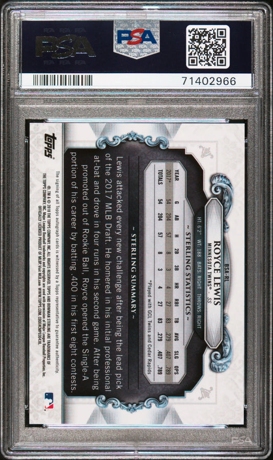 Royce Lewis 2018 Bowman Sterling Continuity Auto #23/99 PSA 9 Mint