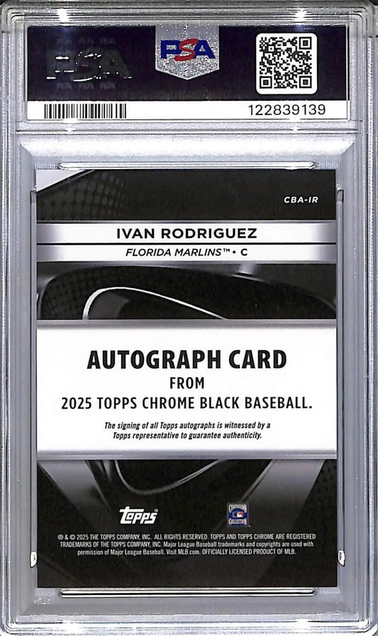 2025 Topps Chrome Black Orange #CBA-IR Ivan Rodriguez PSA 9 MINT Auto 15/25 Florida Marlins