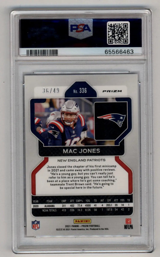 Mac Jones 2021 Panini Prizm Prizms Purple Power #336 36/49 PSA 9 Mint