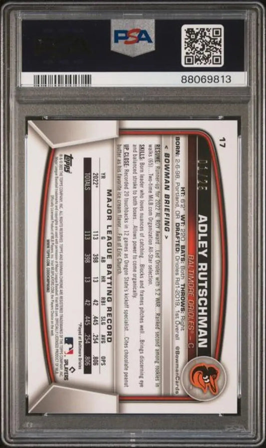 2023 Bowman Chrome Refractor Orange #17 Adley Rutschman PSA 10 GEM MINT RC Rookie 1/25 Baltimore Orioles Baseball Card
