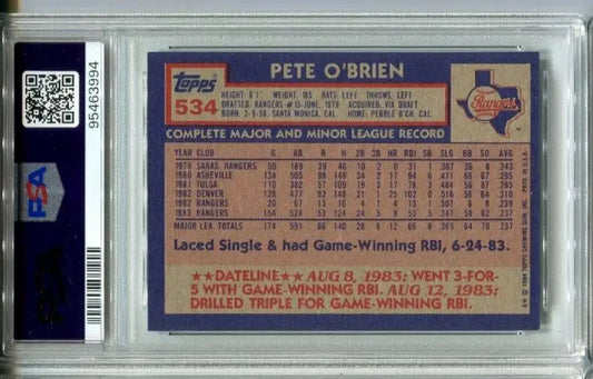 Pete O'Brien Signed 1984 Topps #534 PSA 5 DNA 9 Rookie Autograph RC AUTO Rangers