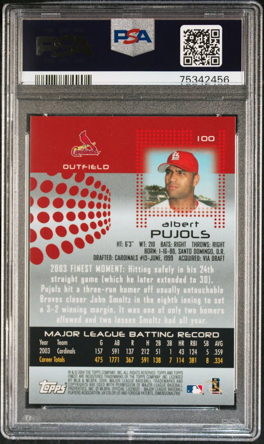 ALBERT PUJOLS 2004 Topps Finest #100 PSA 10 GEM MNT - CARDINALS