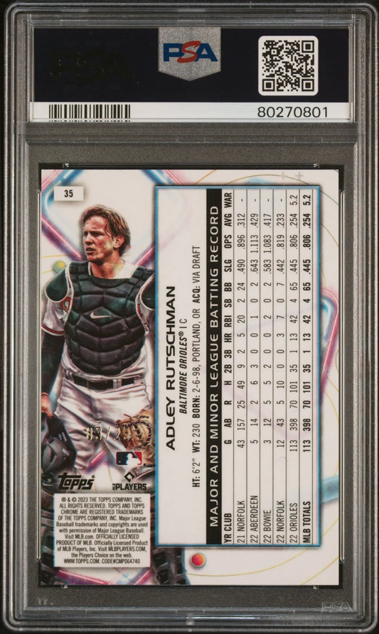 Adley Rutschman 2023 Topps Chrome Cosmic Orange Galactic Refractor #3/25 PSA 8 NM-MINT