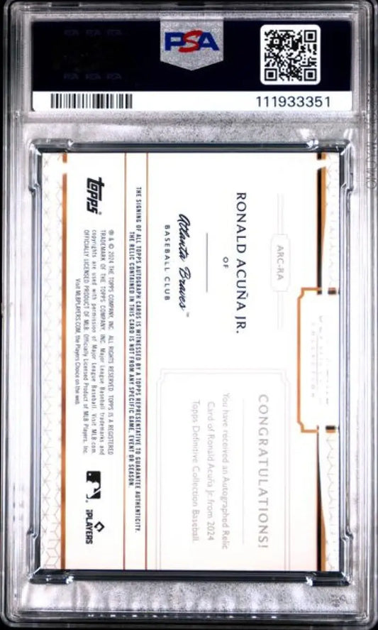 2024 Topps Definitive Relic Green #ARCRA Ronald Acuna Jr. PSA 7 NM MEM Auto 17/25 Atlanta Braves Baseball Card