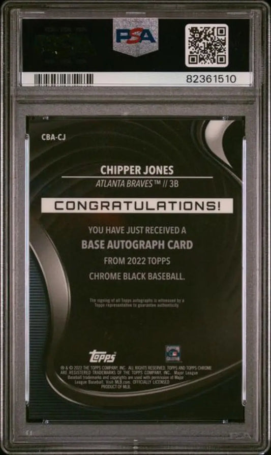 2022 Topps Chrome Black Refractor Orange #CBA-CJ Chipper Jones PSA 9 MINT Auto 9/25 Atlanta Braves Baseball Card