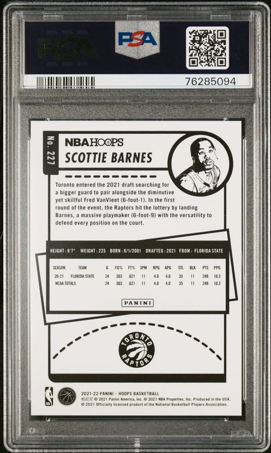 Scottie Barnes 2021 Panini Hoops #227 Artist Proof #6/25 PSA 10 Gem Mint