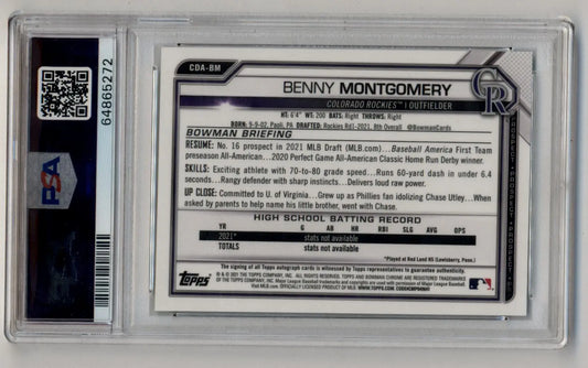 Benny Montgomery 2021 Bowman Chrome Draft Picks Green Refractor Auto 29/99 PSA 10 Gem Mint