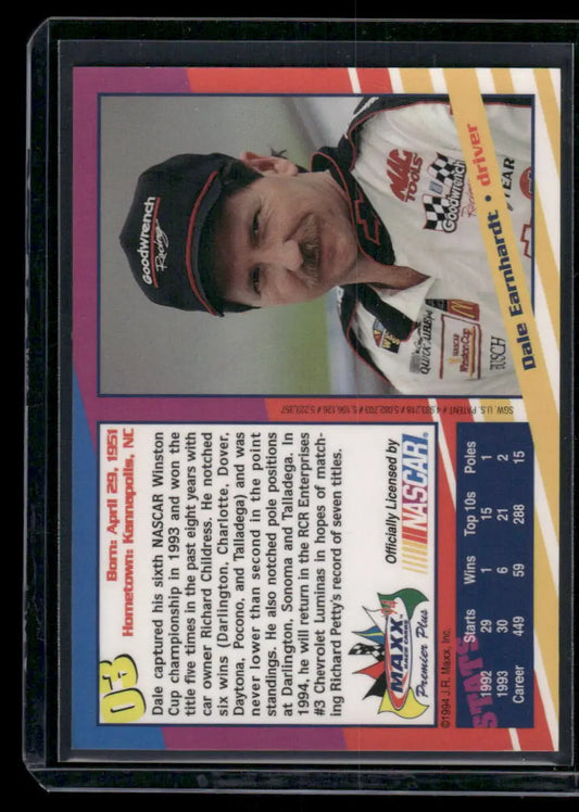 1994 Maxx Premier Plus Dale Earnhardt #51 Auto Racing