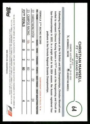 2024 Topps Chrome F1 Christian Mansell #64 Future Stars Auto Racing
