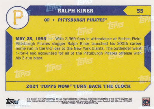 2021 TURN BACK THE CLOCK #55 RALPH KINER- PITTSBURGH PIRATES