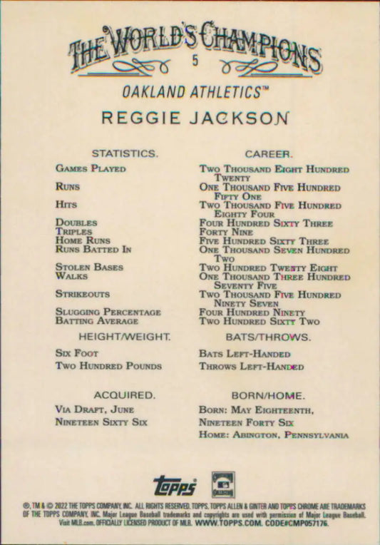 2022 Topps Allen and Ginter Chrome #5 Reggie Jackson NM-MT Oakland Athletics Baseball Card