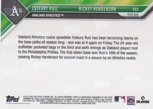 2023 TOPPS NOW #453 ESTEURY RUIZ & RICKEY HENDERSON- OAKLAND ATHELTICS