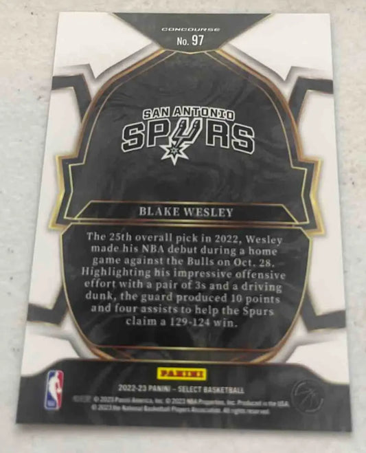 2022 Panini Select Blake Wesley Blue Prizms #97 RC Concourse Spurs