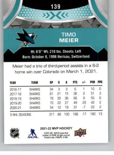 2021-22 Upper Deck MVP #139 Timo Meier NM-MT Sharks ID:39413