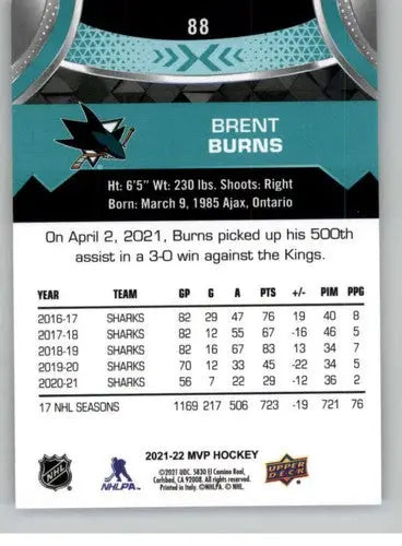 2021-22 Upper Deck MVP #88 Brent Burns NM-MT Sharks ID:39373