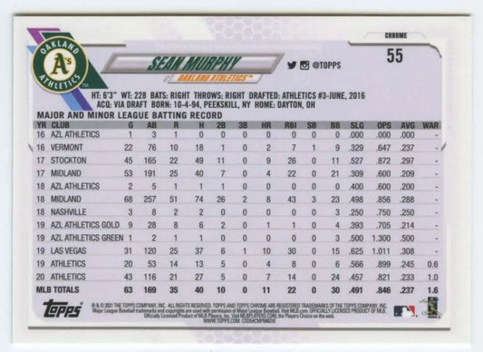 2021 Topps Chrome #55 Sean Murphy NM-MT Oakland Athletics Baseball Card