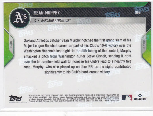 2022 TOPPS NOW #806 SEAN MURPHY- OAKLAND ATHLETICS