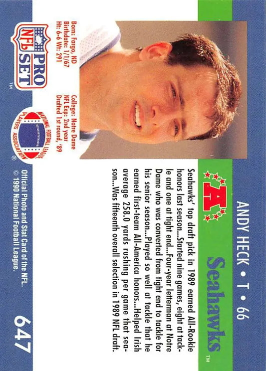1990 Pro Set #647 Andy Heck NM-MT Seattle Seahawks Football Card