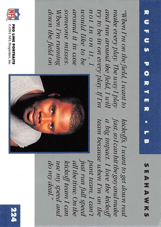 1991 Pro Line Portraits #224 Rufus Porter EX-NM Seattle Seahawks Football Card