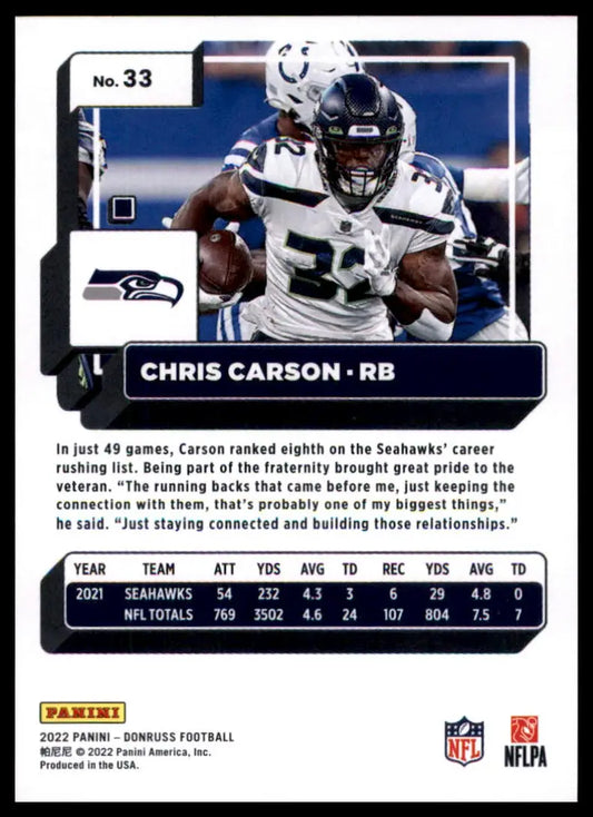 Chris Carson 2022 Donruss #33 Seattle Seahawks