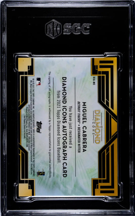 2021 Topps Diamond Icons Diamond Icons Purple #DIA-MC Miguel Cabrera SGC 9 MINT Auto 5/10 Detroit Tigers Baseball Card