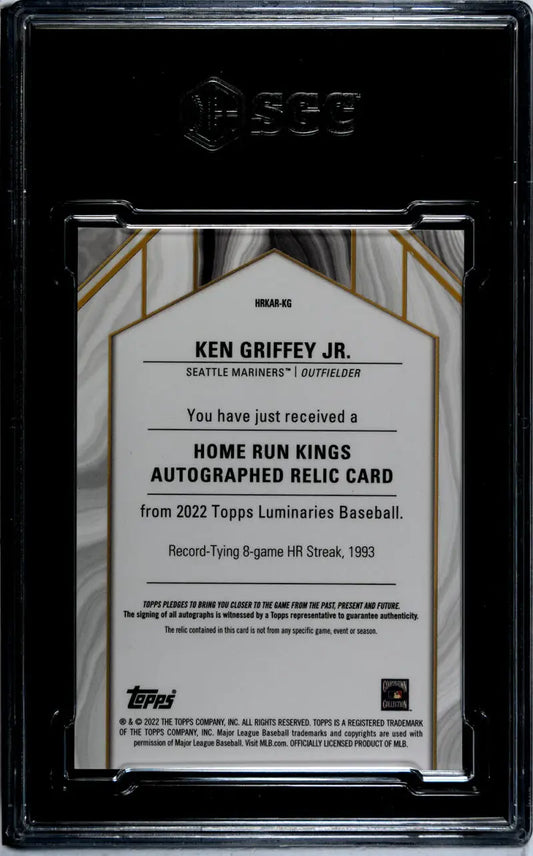 2022 Topps Luminaries #HRKAR-KG Ken Griffey Jr. SGC 9.5 MINT+ MEM Auto 7/15 Seattle Mariners Baseball Card
