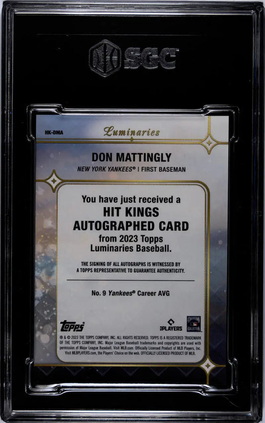 2023 Topps Luminaries #HKDMA Don Mattingly SGC 9 MINT Auto 3/15 New York Yankees Baseball Card
