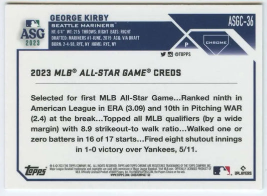 2023 Topps Chrome Update All-Star Game Refractor #ASGC-36 George Kirby NM-MT Seattle Mariners Baseball Card