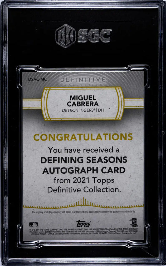 2021 Topps Definitive #DSAC-MC Miguel Cabrera SGC 9 MINT Auto 2/5 Detroit Tigers Baseball Card
